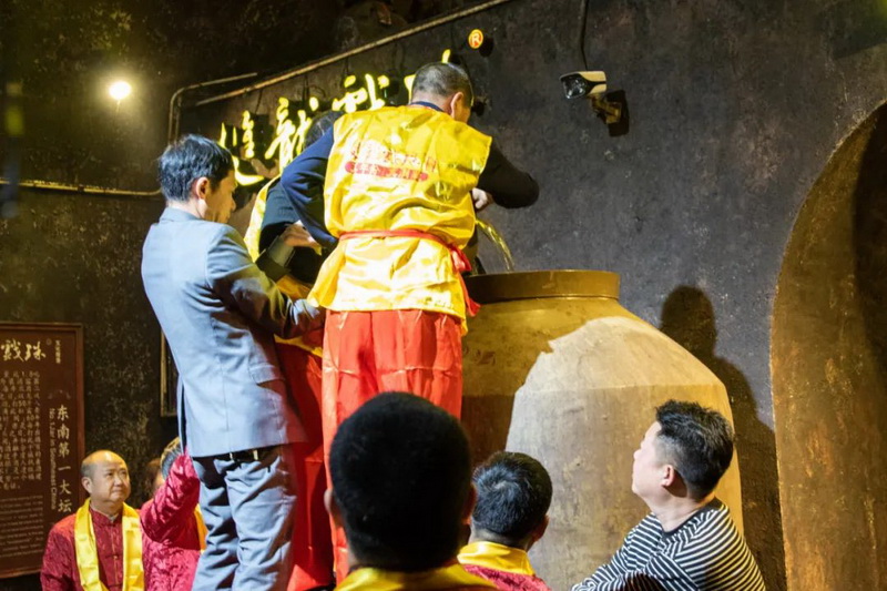 遵循雙龍戲珠的洞藏文化和入洞儀式,工作人員將第一鍋春釀酒送入雙龍洞匯入東南第一大壇進(jìn)行封壇,春釀將進(jìn)入漫長(cháng)的沉淀時(shí)光,靜待歲月啟封。