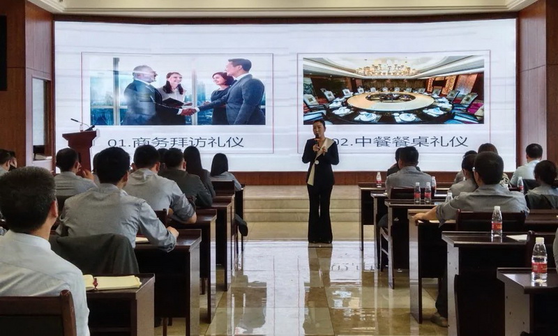 在商務(wù)禮儀培訓課上,李麗婷老師圍繞商務(wù)拜訪(fǎng)禮儀和中餐餐桌禮儀進(jìn)行了細致的講解;并以實(shí)際場(chǎng)景、妝容穿著(zhù)等,對職場(chǎng)中的文明禮儀進(jìn)行解說(shuō),使大家對商務(wù)禮儀有了更深入的了解。