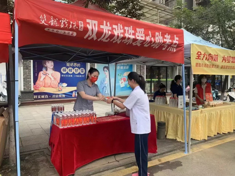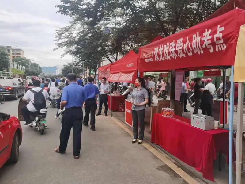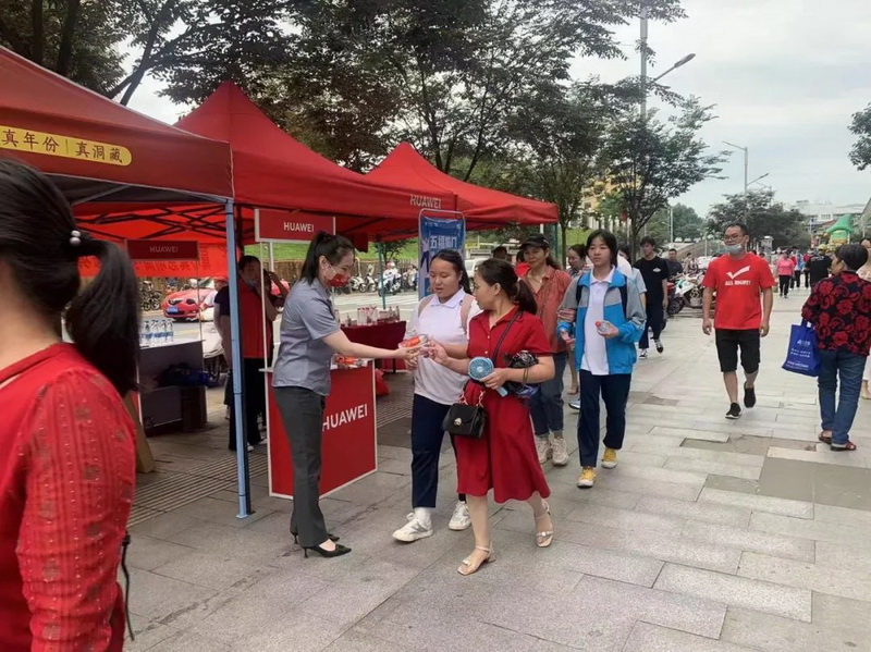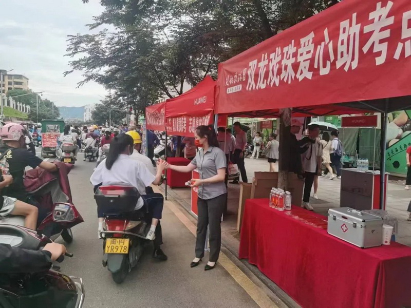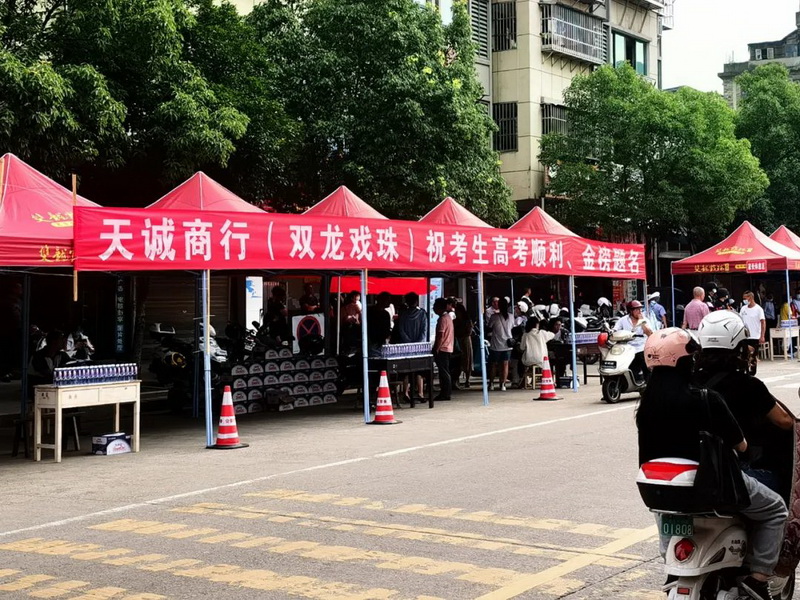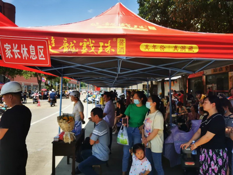 雙龍戲珠酒業(yè)早早來(lái)到了高考點(diǎn),在考點(diǎn)外搭建“愛(ài)心助考”服務(wù)站,拉起橫幅標語(yǔ)為考生們加油鼓勁,并準備了免費礦泉水、一次性口罩、應急藥品等物資,供考生和家長(cháng)免費領(lǐng)取。