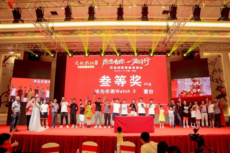 在每輪節目過(guò)后,現場(chǎng)都抽取了幸運觀(guān)眾并送出重磅大獎,榮耀折疊屏手機、10克雙龍戲珠金條、華為手表、2.5L1985醬酒壇酒,更有49999元現金大獎!五輪的抽獎環(huán)節將現場(chǎng)氣氛推向了最高潮。