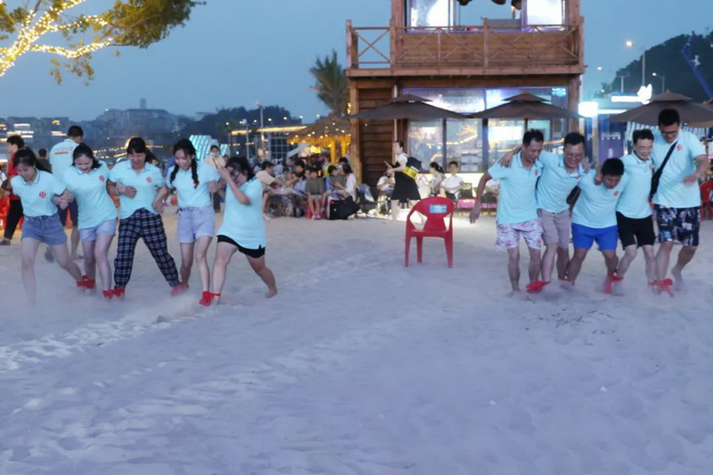 7月16日從溫州市區出發(fā),途經(jīng)洞頭漁村,雙龍戲珠團隊終于抵達最后的目的地--韭菜岙沙灘,“怪獸過(guò)河”、“絲襪保齡球”、“三人兩足”等活動(dòng)接連上演,歡笑聲瞬間就讓整片沙灘變成雙龍戲珠的主場(chǎng)。分組參與的方式,更讓大家明白“團結協(xié)作,合作共贏(yíng)”既是團隊的靈魂,也是工作的核心。