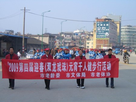 2008年元宵佳節,由市老齡委、文體局、老體協(xié)、及雙龍戲珠酒業(yè)共同組織的“雙龍戲珠”