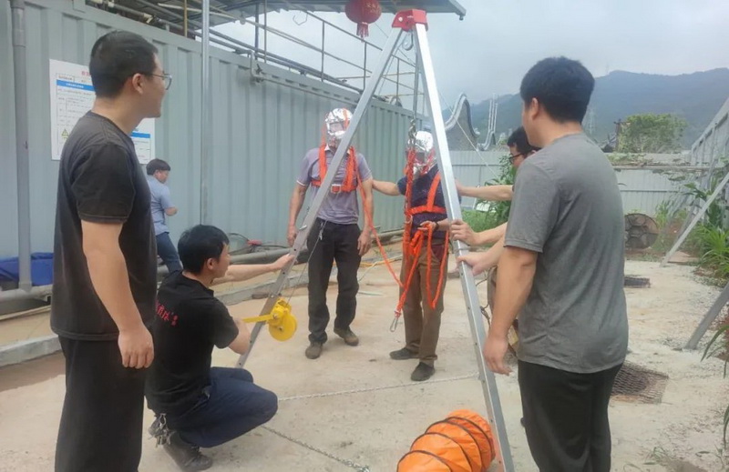 講座培訓后,在老廠(chǎng)雙龍洞前開(kāi)展消防演練、桐源基地(新廠(chǎng))污水處理站旁開(kāi)展有限空間事故專(zhuān)項應急預案演練。從發(fā)現火情、拉響警報、疏散人員、撲救初期火災、疏散引導、安全警戒,整個(gè)疏散過(guò)程反應迅速、安全有序、配合默契,達到了預期目的。