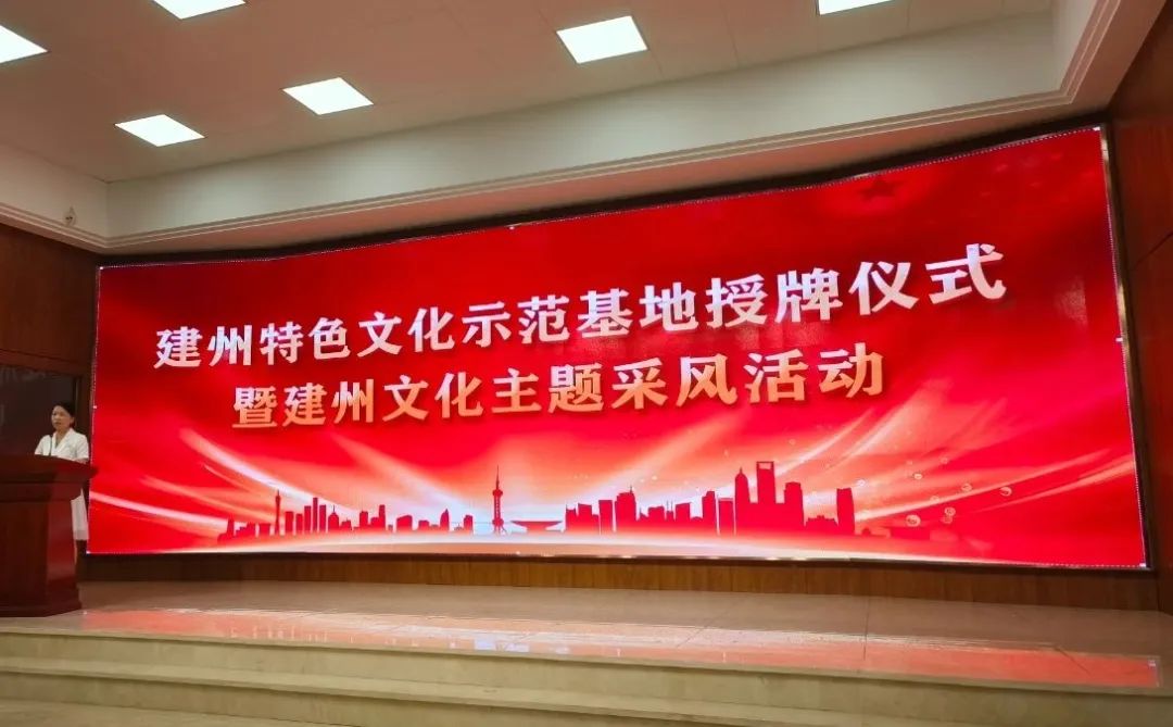 活動(dòng)現場(chǎng),由市委常委、宣傳部部長(cháng)葉華為建州特色文化示范基地授予福建省新時(shí)代特色文藝示范基地牌匾,福建雙龍戲珠酒業(yè)有限公司董事長(cháng)黃德鋒上臺接授牌匾。