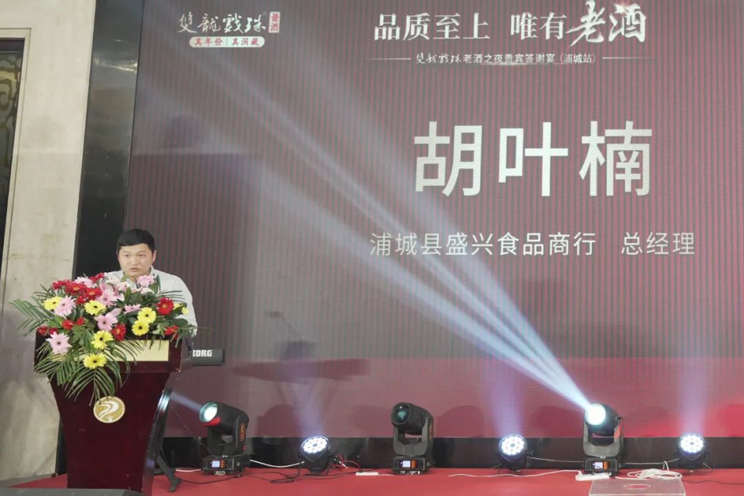 浦城縣盛興食品商行總經(jīng)理胡葉楠在致辭中感謝大家的出席,他表示浦城市場(chǎng)的發(fā)展離不開(kāi)大家的支持,我們舉辦答謝宴,在品鑒高品質(zhì)老酒之際,也想借此機會(huì )加強彼此之間的聯(lián)系,讓各位朋友、伙伴體驗醬香之美,共贏(yíng)美好未來(lái)!