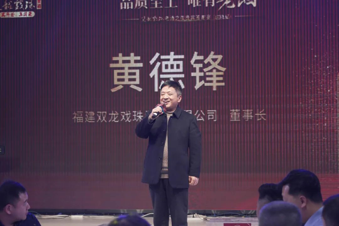 以酒為媒,齊聚一堂!12月16日,以“品質(zhì)至上 唯有老酒”為主題的雙龍戲珠老酒之夜貴賓答謝宴(建甌站第三場(chǎng))在建甌市富貴武夷大酒店隆重舉行。福建雙龍戲珠酒業(yè)有限公司董事長(cháng)黃德鋒、建甌市新柏貿易有限公司總經(jīng)理李儒捷出席活動(dòng)并致辭。