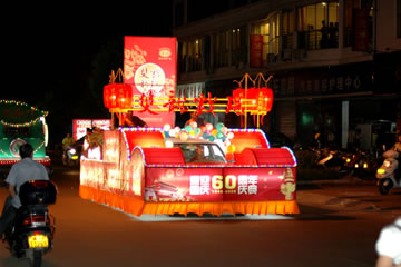 2009年9月29日,為慶祝新中國成立60周年,即首屆建甌閩源文化節開(kāi)幕;公司參加了由建甌市委市政府,私營(yíng)企業(yè)協(xié)會(huì )共同舉辦的,迎國慶,展私營(yíng)企業(yè)風(fēng)采花車(chē)巡游活動(dòng)。這是近10年來(lái)本市舉辦的規模最大的花車(chē)巡游活動(dòng)。由我司布置的雙龍戲珠彩車(chē),以獨特的設計理念,精巧的裝飾,在巡游過(guò)程中受到了廣大市民的好評。