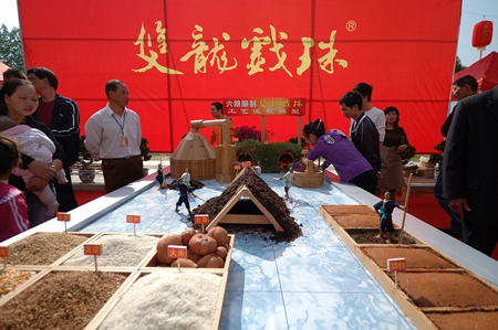 2009年10月18日,為展現古城建甌風(fēng)采,傳播酒文化;公司應邀參加中國筍竹城.。建甌閩源文化藝術(shù)節。參展期間由公司自行研制的六糧釀造“雙龍戲珠”酒深受廣大消費者好評,整個(gè)展區分品酒區、六糧釀造工藝區、產(chǎn)品展示區及酒文化傳播區,特別是六糧釀造工藝流程區的模型區,栩栩如生的小泥人,傳統的釀造工藝流程,讓廣大群眾對中國璀璨的酒文化有了直觀(guān)的認識。通過(guò)此次閩源文化藝術(shù)節,對傳播雙龍戲珠酒文化、樹(shù)福建白酒高端品牌,奠定了堅實(shí)的基礎。