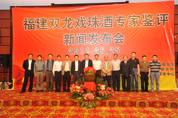 2011年5月25日下午;由福建省輕工業(yè)聯(lián)合會(huì )、四川省釀酒研究所、福建省白酒研發(fā)中心共同主辦的“雙龍戲珠酒專(zhuān)家鑒評會(huì )新聞發(fā)布會(huì )”在福興福大酒店多功能廳舉行。南平市原政協(xié)主席、南平市企業(yè)與企業(yè)家聯(lián)合會(huì )會(huì )長(cháng)宮維其,南平市副市長(cháng)蘭斯文,建甌市市委書(shū)記卓立筑,建甌市政協(xié)主席吳劍琴,建甌市市委常委、副市長(cháng)夏邵平,建甌市市副市長(cháng)林勇,以及“中國白酒專(zhuān)家組副組長(cháng)、江蘇省釀酒協(xié)會(huì )會(huì )長(cháng)、白酒界泰斗沈怡方”;“四川省釀酒協(xié)會(huì )副會(huì )長(cháng)陳吉?!?;“四川省釀酒研究所所長(cháng)吳亞?wèn)|”;“ 四川省釀酒研究所副所長(cháng)、國家青年白酒專(zhuān)家楊官榮”;“瀘州老窖副總經(jīng)理、國窖1573酒體設計者張宿義”;郎酒集團酒體設計中心副主任程偉“出席新聞發(fā)布會(huì );建甌市市副市長(cháng)林勇代表建甌市委市政府對雙龍戲珠酒專(zhuān)家鑒評會(huì )圓滿(mǎn)成功表示祝賀;有酒界泰斗沈怡方宣讀雙龍戲珠酒鑒評結果:無(wú)色透明、窖香幽雅、陳香舒適、甘冽爽口、尾凈余長(cháng)、多糧濃香風(fēng)格典型。福建新聞頻道、南平電視臺、建甌電視臺等多家媒體對此次鑒評會(huì )進(jìn)行專(zhuān)題報道。