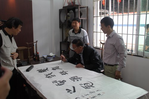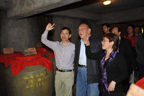 2011年5月25日,沈老在參加完“雙龍戲珠酒專(zhuān)家鑒評會(huì )”后,在總經(jīng)理馮敏的陪同下參觀(guān)雙龍戲珠酒業(yè),從釀造車(chē)間、研發(fā)中心、罐裝車(chē)間、雙龍洞每到一處沈老都饒有興趣停下來(lái)仔細觀(guān)察和總經(jīng)理一起探討釀造工藝,對我公司獨創(chuàng )的“六糧釀造及洞藏”給予了很高的評價(jià),沈老說(shuō)在福建能釀出多糧濃香型白酒實(shí)屬不易呀,勉勵我們要堅持原漿釀造,為福建的白酒事業(yè)做出貢獻,參觀(guān)后沈老還和眾專(zhuān)家一起為雙龍戲珠酒題詞“雙龍戲珠、閩酒之冠”。