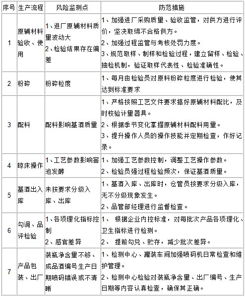 圍繞影響不合格品的因素,重點(diǎn)在配料過(guò)程、攤涼操作、入池發(fā)酵、勾調、檢驗等為生產(chǎn)的重要環(huán)節,我們進(jìn)行層層控制,分別制定了操作規程,當出現不合格時(shí),立刻停止生產(chǎn),查明不合格原因,待查明原因通過(guò)整改符合要求才能恢復生產(chǎn)。