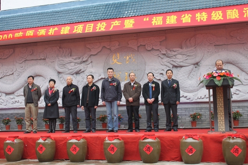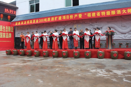 2012年12月12日雙龍戲珠酒業(yè)300噸原酒擴建項目投產(chǎn)暨福建省特級釀酒大師頒證儀式在我司隆重舉行。福建省酒業(yè)協(xié)會(huì )秘書(shū)長(cháng)朱榕光、南平市企業(yè)家聯(lián)合會(huì )會(huì )長(cháng)宮維祺、建甌市市長(cháng)陳宗榮、建甌市人大常委會(huì )主任陳祥平、建甌市政協(xié)主席吳劍琴等領(lǐng)導出席儀式。副市長(cháng)鄭敏主持儀式,儀式上福建省酒業(yè)協(xié)會(huì )秘書(shū)長(cháng)朱榕光為雙龍戲珠酒業(yè)董事長(cháng)馮國華榮獲福建?。ㄎㄒ唬┨丶夅劸拼髱燁C發(fā)證書(shū)及牌匾,頒證儀式后參加儀式得各位領(lǐng)導為雙龍戲珠酒業(yè)300噸原酒擴建項目投產(chǎn)剪彩。