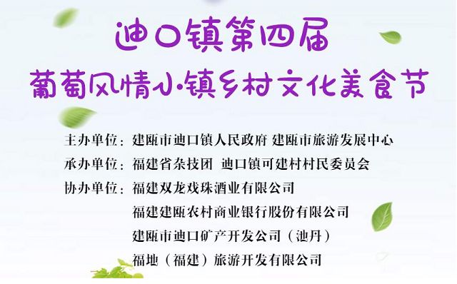迪口鎮第四屆葡萄風(fēng)情小鎮鄉村文化美食節開(kāi)幕了,活動(dòng)時(shí)間2019年7月26日-7月27日,活動(dòng)將以葡萄、特色農產(chǎn)品、特色美食為主導展示給大家。