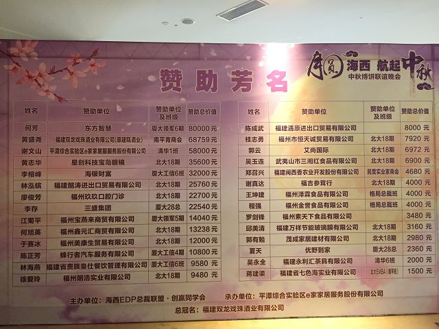 福建雙龍戲珠酒業(yè)有限公司祝賀海西EDP總裁聯(lián)盟-創(chuàng )贏(yíng)同學(xué)會(huì )-月圓海西 航起中秋博餅聯(lián)誼晚會(huì )圓滿(mǎn)成功。