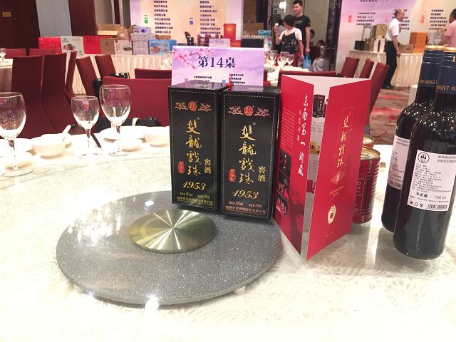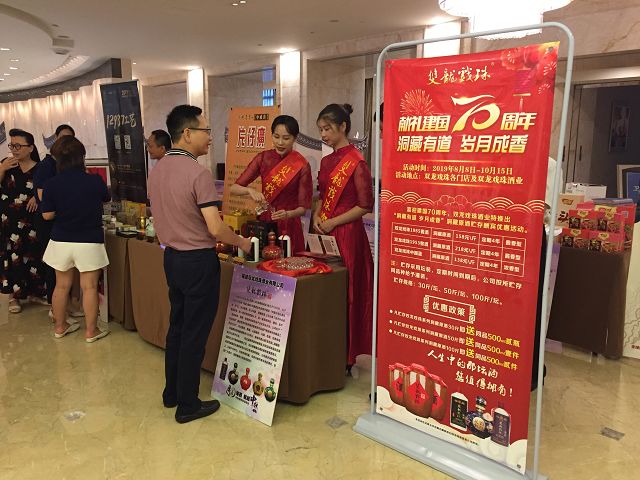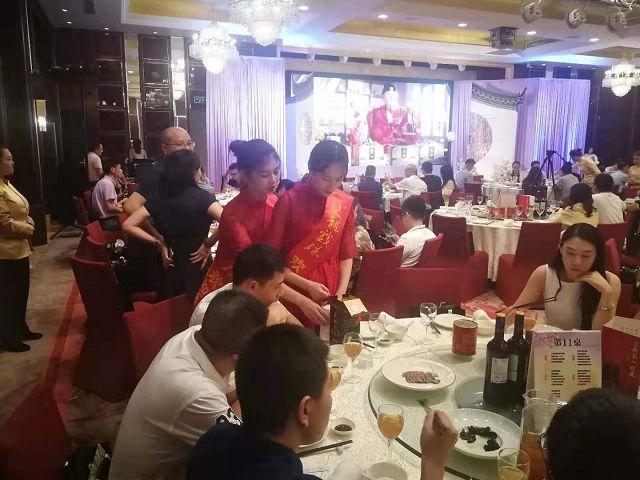 雙龍戲珠酒業(yè)現場(chǎng)產(chǎn)品展示、來(lái)賓現場(chǎng)品鑒美酒