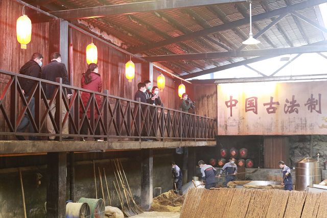 在釀造車(chē)間,看到工人們一個(gè)個(gè)都規范地戴著(zhù)口罩作業(yè),領(lǐng)導們都滿(mǎn)意地點(diǎn)頭稱(chēng)贊。