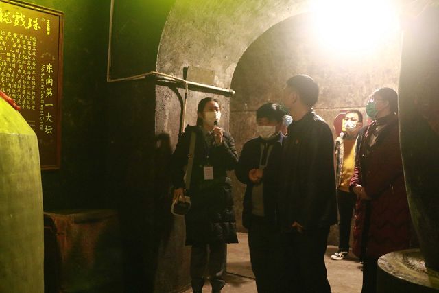 在雙龍洞,面對洞內陳列著(zhù)的從酒廠(chǎng)成立至今的雙龍戲珠酒以及撲鼻而來(lái)的濃郁的酒香味,領(lǐng)導們不約而同地發(fā)出了由衷的贊嘆。